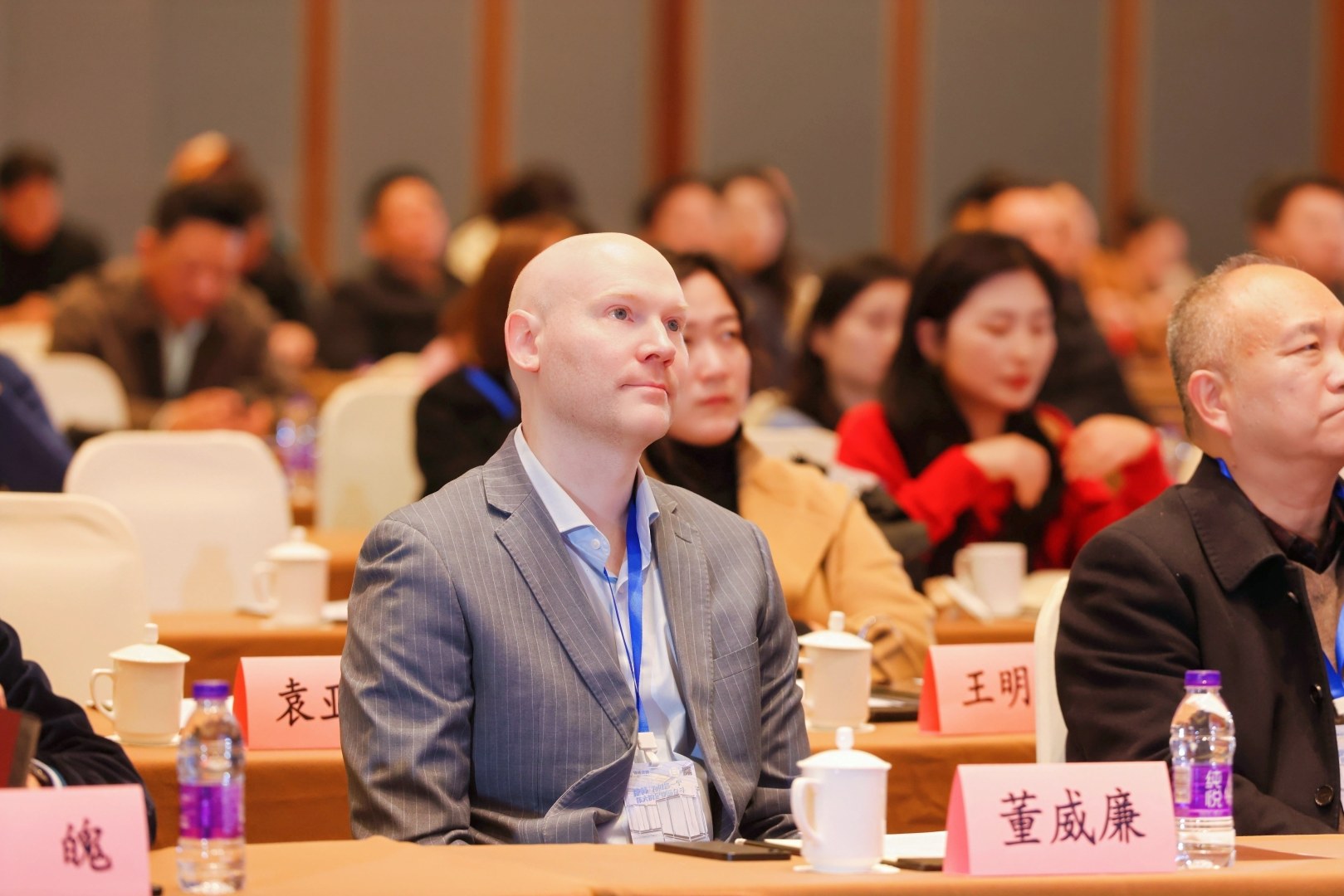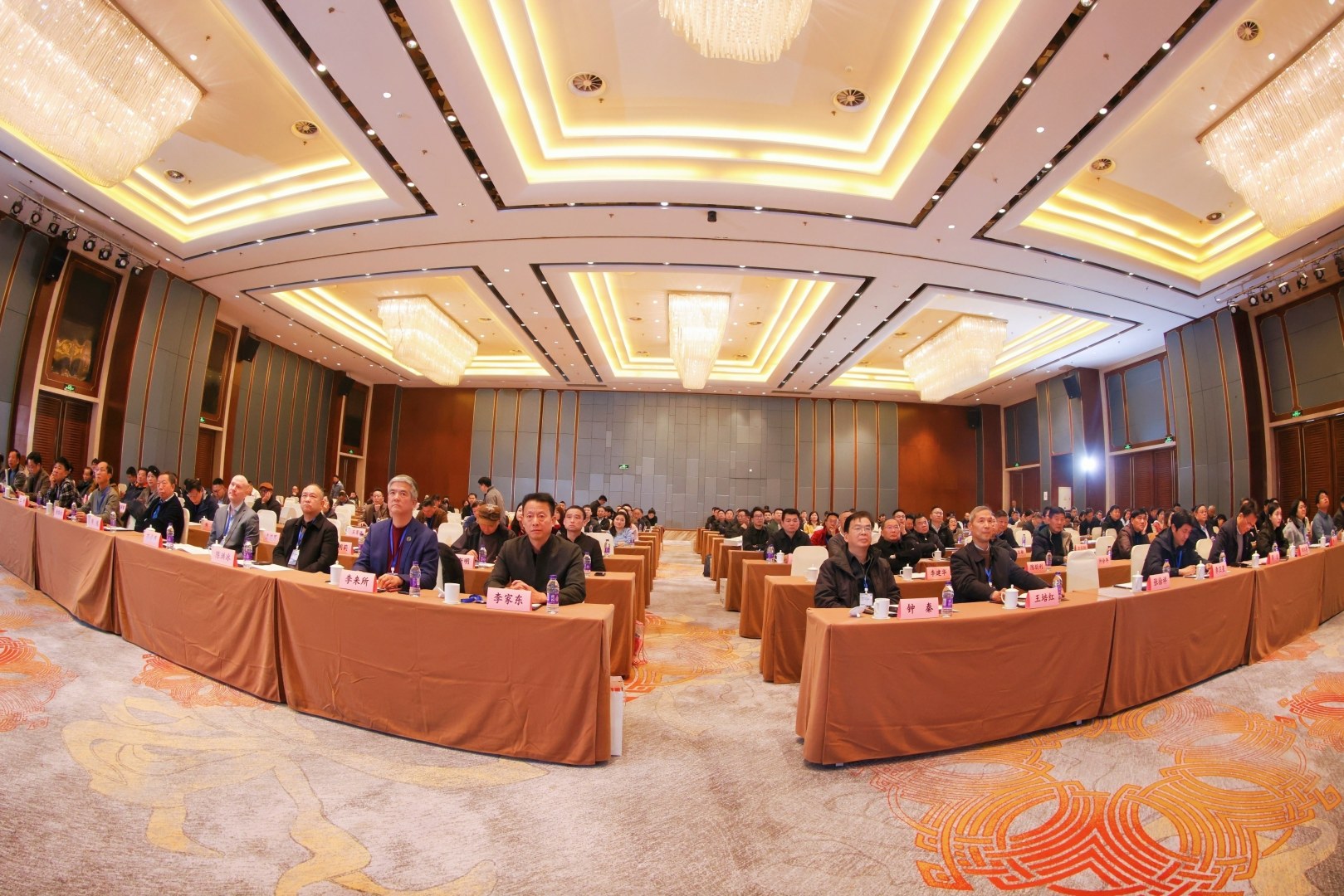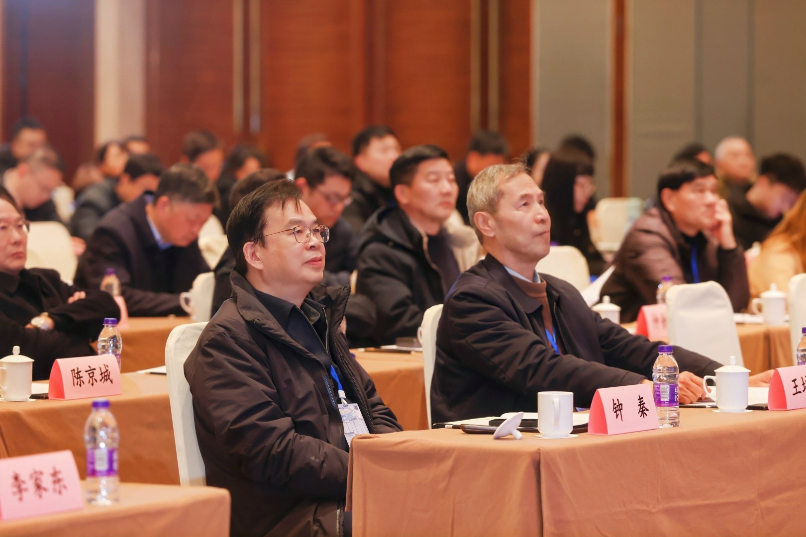 我会的行业管理部门负责人、南京大学张徐祥教授、东南大学王培红教授、南京理工大学钟秦教授、南京工业大学李卫星教授、江苏省钢铁行业协会会长陈洪冰、江苏工业经济联合会副会长陶魄、江苏省钢铁服务业协会会长陈达、江苏省可再生资源行业协会副会长杨维林、新华日报传媒长三角全媒体创新中心主任成曦、江苏省钢铁行业协会秘书长蒋莉、江苏省能源研究会秘书长周雅静、荷兰王国南京代表处首席代表董威廉、德国巴符州代表处项目经理杨月、香港贸发局南京代表处副主任刘红英、越南新科环保设备有限公司总经理吴子明、未来水科技创始人高嵩、年会冠名单位捷林环保科技有限公司董事长王伟、环小二平台创始人陈治安、协会监事李兆龙、协会会长李来所及南京多家商协会的负责人在前排就座。