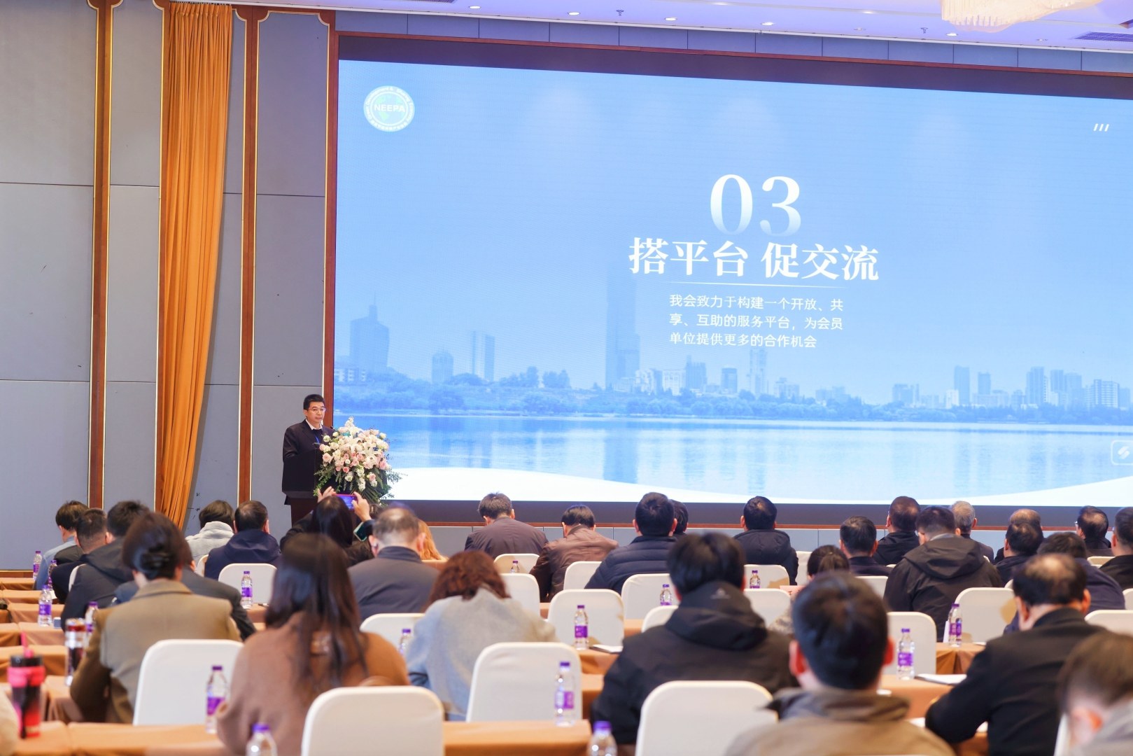 年会的前一天下午,“南京社会工作”微信公众号发布了我会以“红色引擎”驱动绿色产业出海的文章,详细介绍了我会以党建工作实现“外循环拓市场、内循环强协同”的相关工作,对我会的“党建工作+产业服务”给予了充分肯定。这篇文章犹如和煦的春风,不但极大地振奋了广大会员的信心,也为大会的隆重召开营造了昂扬向上的氛围。