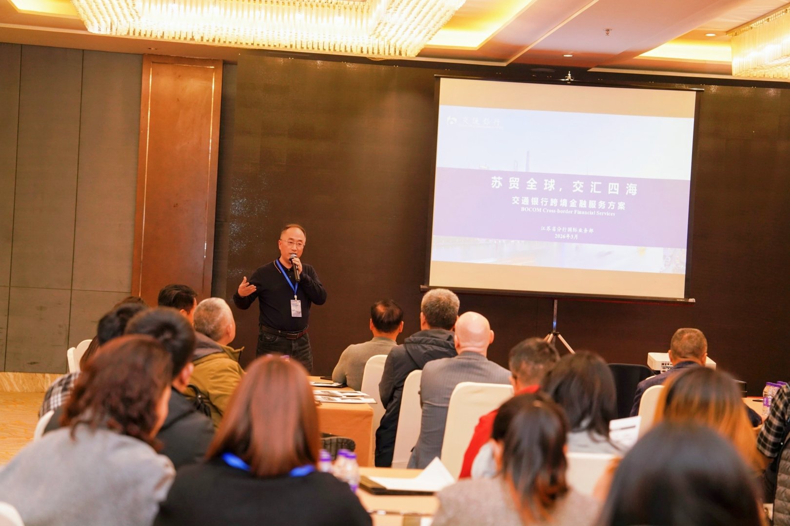 紧接着,交通银行江苏省分行联动越南胡志明分行通过远程连线与现场讲解相结合的方式,带来了关于越南宏观经济环境、投资机遇及“一站式”跨境金融服务的深度解读。交行聚焦跨境结算、境外融资、汇率避险等企业核心痛点,提出的综合金融方案精准切中企业需求,获得参会企业广泛好评。